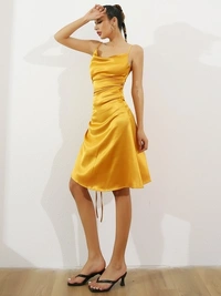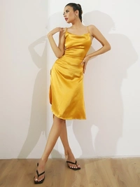 SATIN SIDE SPLIT RUCHED SLEEVELESS DRESS